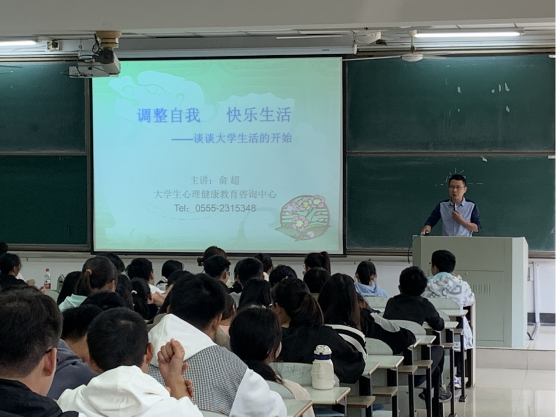 10月17日下午,指尖四川麻将 在佳山校区教三南401举办新生入学适应心理讲座。校大学生心理健康教育咨询中心俞超老师应邀主讲,化工指尖四川麻将 心理工作站站长朱圣兰老师主持,全体新生聆听此次讲座。