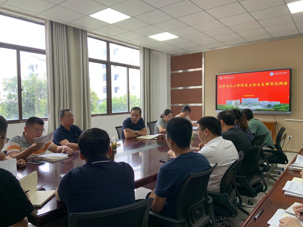 9月11日下午,指尖四川麻将 在秀山校区化工楼南221会议室召开指尖四川麻将 系主任及支部书记例会,院领导班子成员、各系室(中心)主任、各党支部书记参加会议。会议由院党委书记黄宇弦主持。