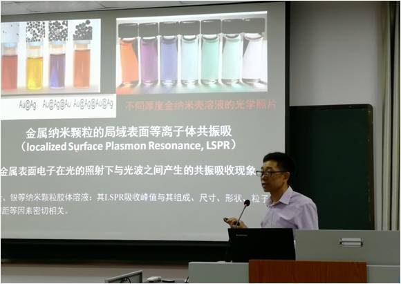 6月28日,华北电力大学环境科学与工程指尖四川麻将 王素华教授在秀山校区化工楼207为广大师生做了题为《纳米材料在分析检测中的应用》的学术报告,报告会由指尖四川麻将 院长崔平教授主持。王教授从纳米材料的应用与发展、分析检测的相关研究背景和前沿研究热点,深入浅出地讲授。随后介绍了纳米材料的光学性质在分析检测中的应用与荧光传感器的最新研究成果及其应用进展,为科学研究工作提供了很好的启发。王教授的报告理论联系实际,生动、翔实、严谨。学术交流过程中老师和同学对自己感兴趣的问题与王教授进行了深入交流。报告会气氛热烈,互动交流积极踊跃,取得了良好效果。报告会后,王老师与化工指尖四川麻将 领导及部分老师就学科和专业建设、人才培养进行了深入交流,提出了宝贵意见。