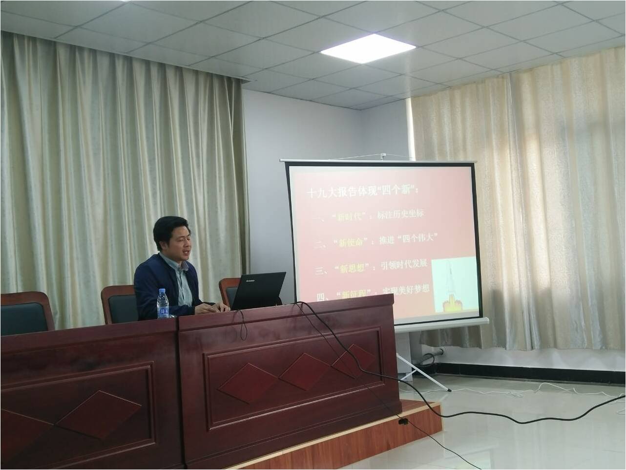 参加学习的教师也也在会后纷纷表示:在今后的工作中,一定会严以律己,严以修身,以德立身,以德立学,以德施教,充分发挥自身的先锋模范作用,切实将十九大精神贯彻落实到具体工作中,以新气象新作为赢得学生的认可。