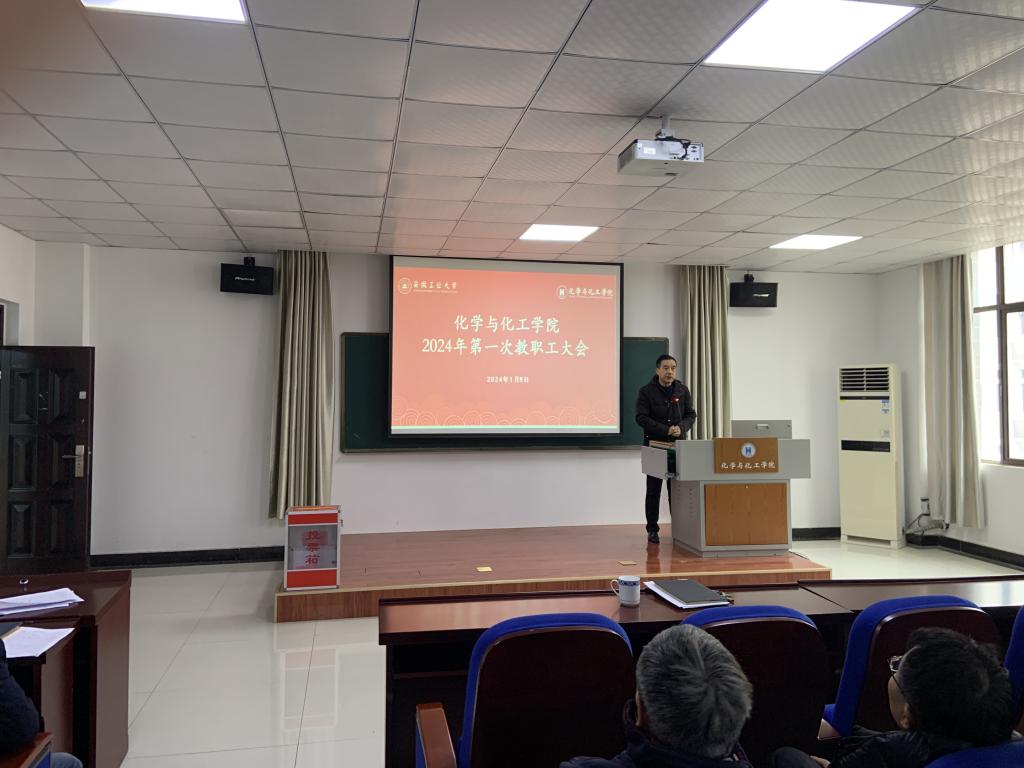 2024年1月8日下午,指尖四川麻将 在化工楼南207报告厅召开2024年第一次全院教职工大会。会议由院党委书记黄宇弦主持。