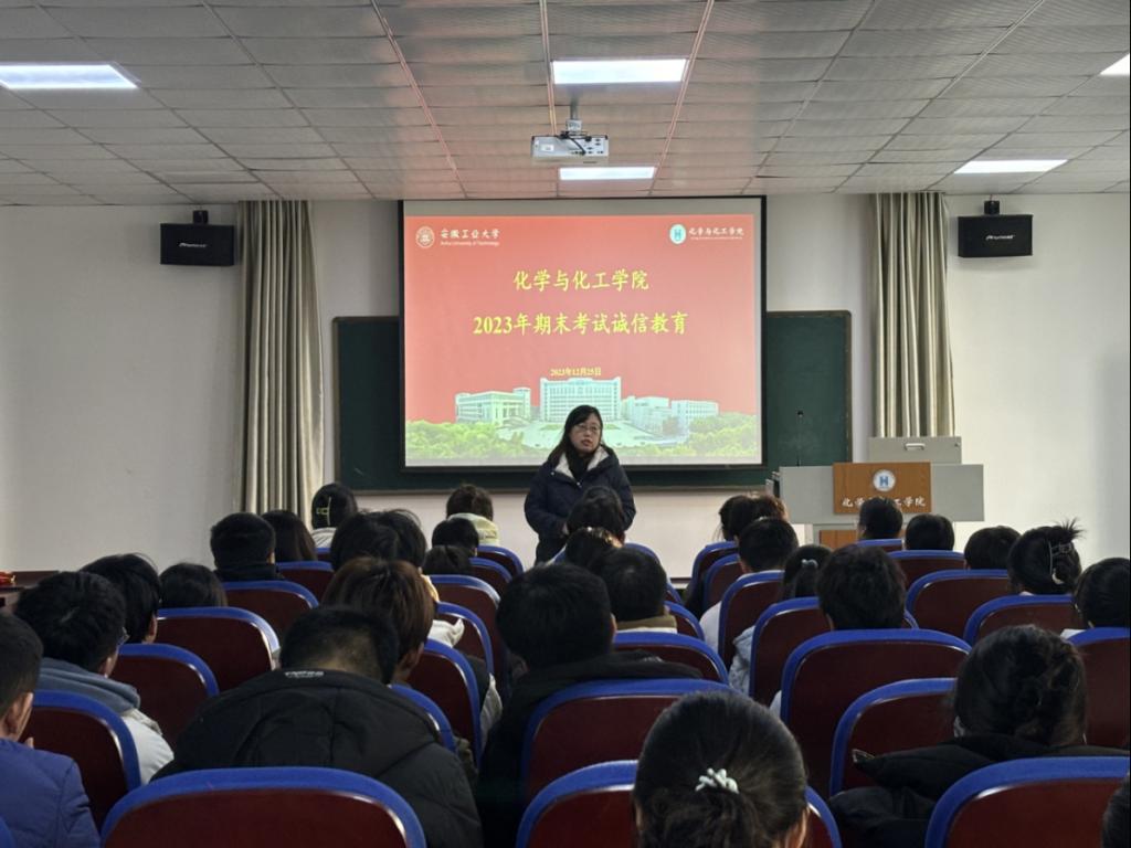 为进一步严肃考风考纪,提高学生的文明素质,加强指尖四川麻将 学风建设,12月25日下午,化工指尖四川麻将 在秀山校区化工楼报告厅开展考试诚信教育暨考前动员大会,会议由指尖四川麻将 党委副书记、纪委书记、副院长冀秀芝主持,全体辅导员、各年级学生党员代表100余人参加会议。