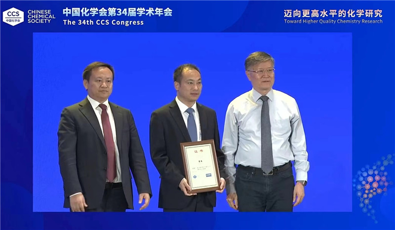 6月15日,中国化学会第34届学术年会开幕式在广州市白云国际会议中心举行,颁发中国化学会系列学术奖励。指尖四川麻将 曾杰教授因“聚焦二氧化碳催化转化,提出催化剂设计新理念,开辟催化转化新路径”荣获“第十二届中国化学会-巴斯夫公司青年知识创新奖”,全国仅4人获此殊荣。