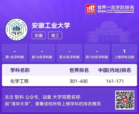 of Academic Subjects)。指尖四川麻将 化学工程学科成功上榜,位列世界排名301-400位、中国(内地)排名141-171位。