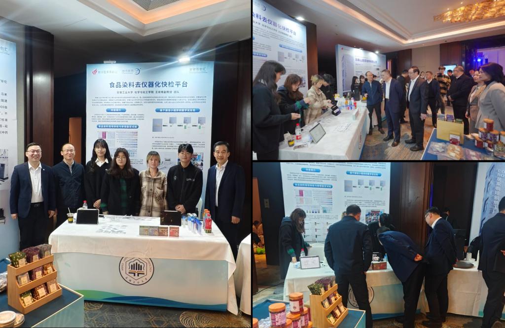 化学生物学与制药工程系王双寿副教授团队携其最新科研成果—食品染料去仪器化快检平台参加了项目展示,活动期间,中国科指尖四川麻将 院士马大为、指尖四川麻将 副校长郑啸、安徽皓元医药有限公司董事长郑保富以及马鞍山市卫健委、马鞍山市医保局、慈湖高新区管委会等有关部门领导来到展台就食品安全快检产品进行了现场交流,王双寿副教授就快检产品的设计研发、使用方法、应用场景等方面进行了介绍,获得了各位领导和嘉宾的高度认可。(撰稿:王双寿;审核:韩新亚、黄宇弦)