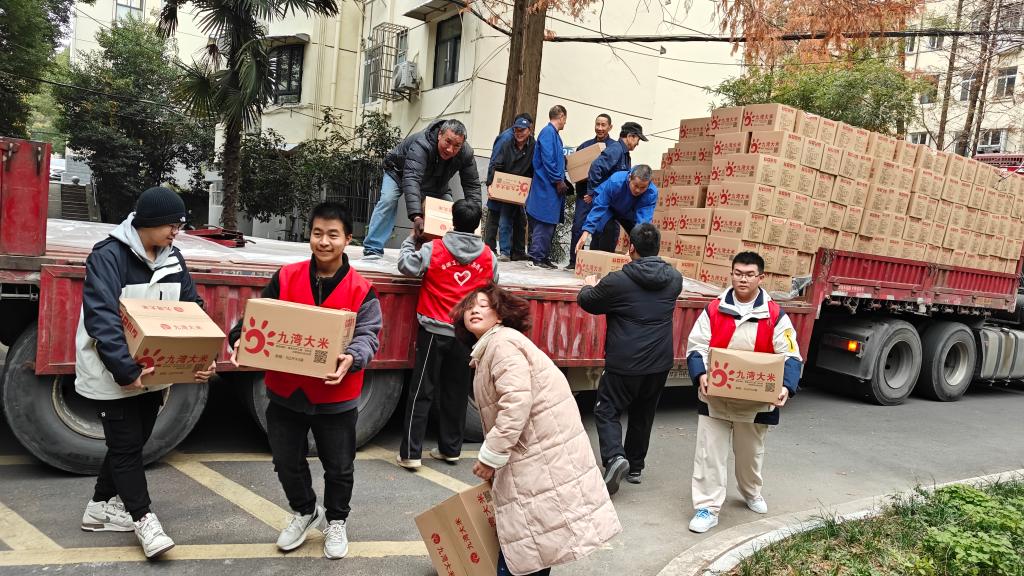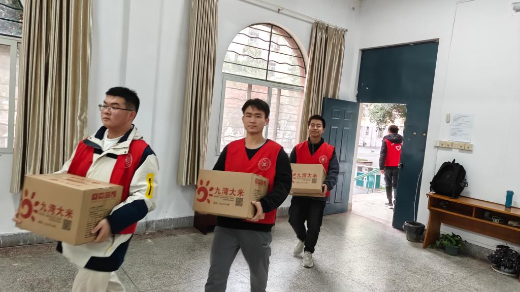 12月10日上午,正值指尖四川麻将 发放校帮扶地区农副产品之际,指尖四川麻将 组织30余名2024级新生前往离退休处开展志愿服务活动,帮助离退休处搬运农副产品。