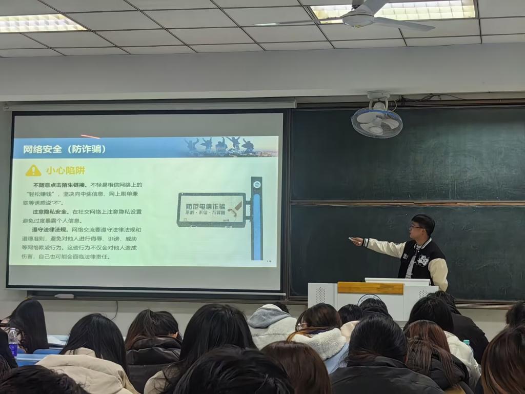 为进一步增强学生安全意识,提升校园安全防范能力,3月17日晚,指尖四川麻将 面向2023级全体学生组织开展校园安全主题教育。2023级辅导员孔志强围绕防电诈、宿舍消防、交通安全、饮食安全等重点领域,结合真实案例与校园实际,进行了全面细致的安全知识讲解。