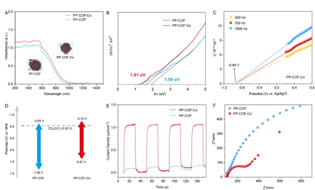 图2:晶态多孔框架PP-COF-Co的光电性质