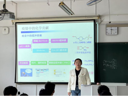 林鹏老师在《有机化学A2》"β–二羰基化合物"教学中,创新采用"知识导入-思政融通-新知探究-应用拓展"四阶教学法。课程以羰基化合物知识回顾为起点,通过启发式提问引导学生探索β–二羰基化合物的特性,自然融入国家"双碳战略",以"羰基化学助力低碳发展"的思政主题彰显学科时代价值。在深入讲解酮-烯醇互变异构、Claisen酯缩合等核心内容时,林老师巧妙结合工业应用案例,通过总结知识模块,并展示具体反应在工业生产中的具体应用,形成学习闭环,增强教学效果。闫岩老师在《工程化学基础》课程中,以缓冲溶液原理为桥梁,构建起化学与生命科学的联结。通过生动解析人体血液pH调节机制,延伸至新冠疫苗研发中缓冲溶液的关键作用,从而培养学生敬畏生命的意识、健康生活的理念,以及用科学知识守护生命安全的责任担当。王双寿老师在《仪器分析》课程中,聚焦紫外-可见吸收光谱技术,结合食品安全、环境污染等社会热点,通过对比科研实验与生活应用案例,培养学生"理论联系实际"的思维方法,在掌握先进分析技术的同时,树立起严谨求实的科学态度和解决实际问题的责任意识。