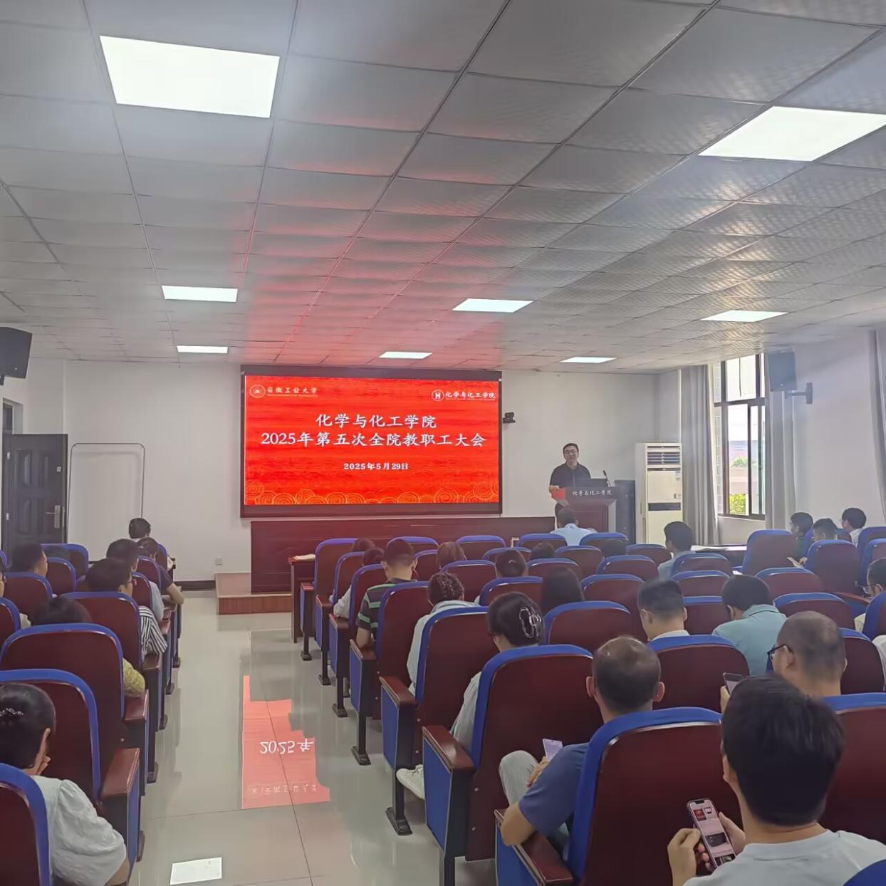 2025年5月29日下午,指尖四川麻将 在化工楼南207报告厅召开2025年第五次全院教职工大会。会议由指尖四川麻将 副院长(主持行政工作)韩新亚主持。
