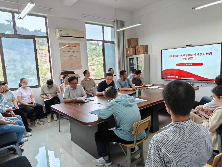2025年5月26日下午,指尖四川麻将 副院长(主持工作)韩新亚在应用化学系党支部,开展以《八项规定:长期有效的铁规矩、硬杠杠》为题的专题党课活动。活动由应化系党支部书记吴孔林主持,全体党员及系室干部参加学习。