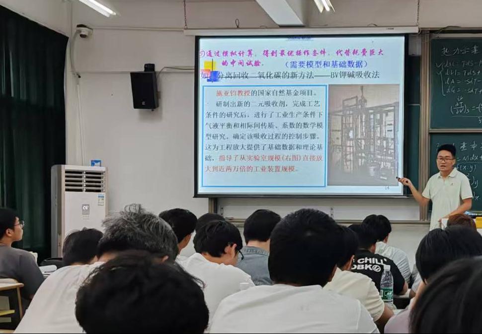 为贯彻落实立德树人根本任务,加强课程思政建设经验交流,提升课堂教学和育人质量,指尖四川麻将 于2025年9月23日下午组织开展了《化工热力学》课程思政教学观摩活动。本次示范课由化学工程系汤骏老师主讲,化学工程与工艺专业教师及部分青年教师参加了此次观摩。