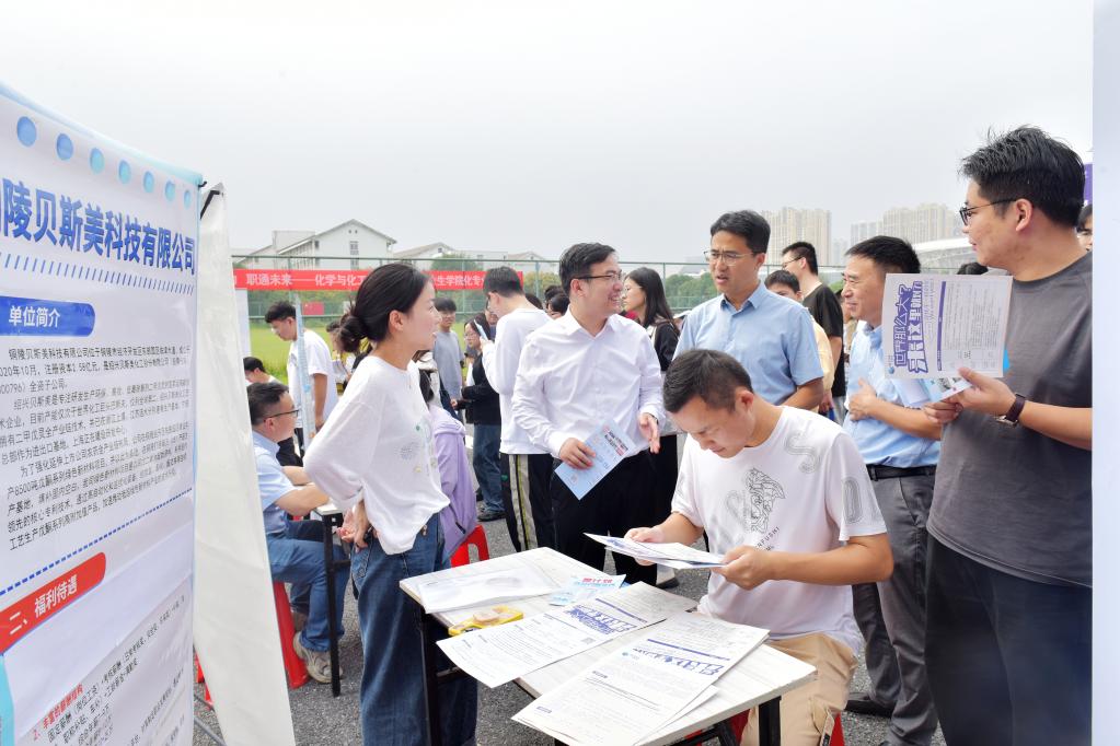 本次招聘会经过前期广泛宣传与精准对接,共吸引包括南京钢铁股份有限公司、中天钢铁集团(南通)有限公司、金发科技股份有限公司、江苏沙钢钢铁有限公司、安徽华谊化工有限公司、铜陵泰富特种材料有限公司、安徽华星化工有限公司等26家涵盖多个领域的优质企业参会。参会单位专业匹配度高、行业代表性强、岗位类型丰富,共提供就业岗位700余个,吸引近1500名学生到场参与,初步达成就业意向300余人。