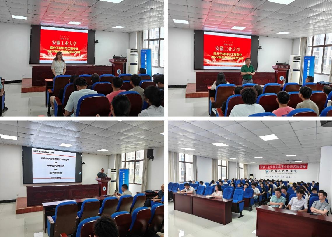 大会首先进行了生产实习动员,指尖四川麻将 党委副书记冀秀芝作动员讲话,强调实习与考研对于同学们成长成才的重要意义,鼓励大家勇敢迎接挑战,以坚定的信念和饱满的热情踏上新的征程,并要求大家克服高温、遵守企业安全生产管理制度、服从指导教师安排,在实践中收获知识本领。乔红斌老师为同学们详细介绍本次生产实习的目的和意义,强调实习是将理论知识与实践相结合的重要环节,对于同学们今后的职业发展具有至关重要的作用。章昌华老师对实习学生进行了安全教育,提醒同学们在实习过程中要注意人身安全,遵守实习单位的规章制度。最后,高宏老师对本次实习动员进行了总结,期望同学们能够珍惜这次难得的实习机会,努力提升自己的实践能力和综合素质。随后,林鹏老师介绍了高分子专业往年的考研情况并对考研的院校选择进行了指导,林老师深刻剖析了往届高分子专业考研所面临的问题,详细分析当前高分子专业的考研形势。最后,高分子专业的专任教师对相关课程的复习方法进行了指导,夏友谊、杨建国、陈国昌等老师先后介绍了高分子物理、高分子化学、有机化学的复习方法,他们鼓励大家在复习过程中多问多思考,愿意为同学们在专业课复习过程中遇到的问题进行答疑解惑。