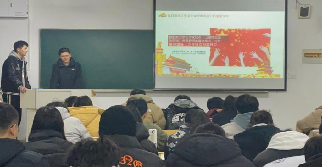 会上,各班结合学习宣传党的二十大精神,围绕“修身立德,厚植爱国情怀“以学报国,增强爱国本领两个专题展开讨论期间,有的同学分享了身边的优秀党员模范事迹,有的立志要存真求实,勇攀科学高峰,有的坚定要成为有“志气、骨气、底气”的新时代青年大学生。现场同学们积极踊跃,气氛热烈。