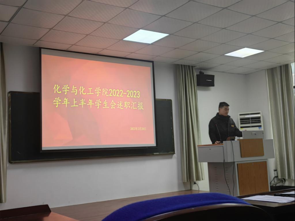 化工指尖四川麻将 于3月20日下午在秀山校区化工楼南207报告厅召开2022-2023学年第一学期学生组织工作人员述职评议会。院党委副书记、副院长冀秀芝,院团委书记唐志强、各年级辅导员、学生代表以及院团委学生会全体成员参加此次评议会。