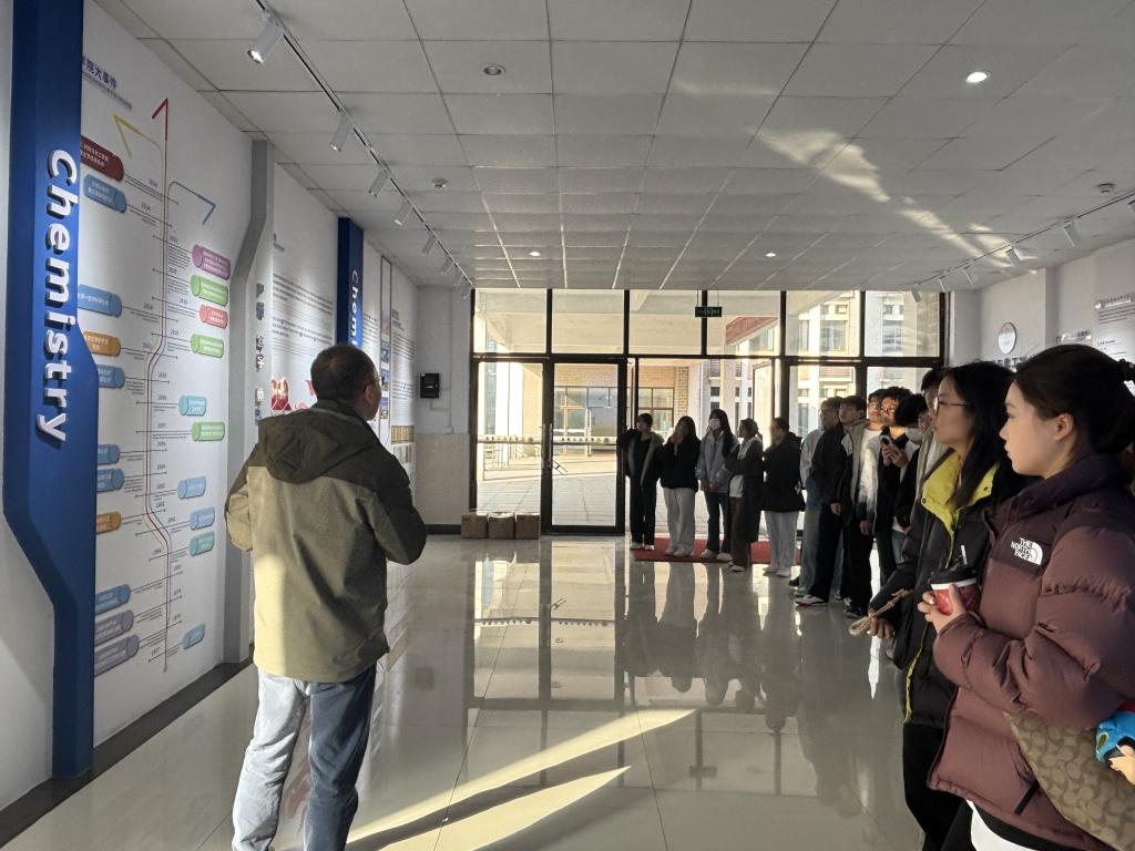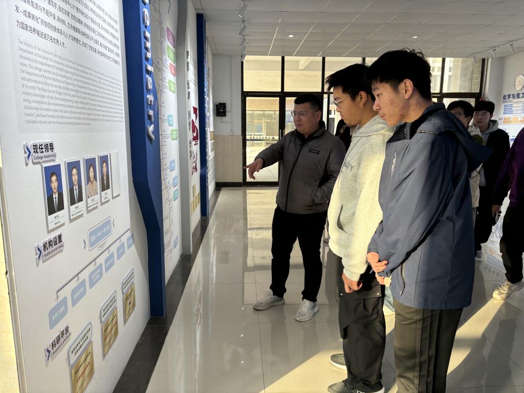 参观后,同学们来到指尖四川麻将 文化长廊。老师们依托展板、实物模型及历史照片,生动讲解了指尖四川麻将 的发展历程与重要科研成果。同时向同学们介绍了国际交流合作、学生科创比赛获奖及毕业生就业升学情况,进一步拓宽了新生对化学化工学科前景的认知视野,增强新生对大学学习与科研探索期待与信心。